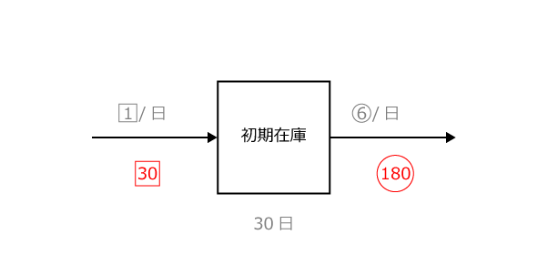 「初期在庫」+30 = 180 あるいは 180-30 =「初期在庫」