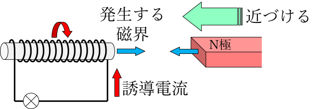 「N極を近づけると、近づけた側がN極になるように電流が流れる。」