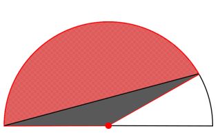 このように、先ほど作った赤いおうぎ形から黒い三角形の面積を引いて求めるのが良さそうです。