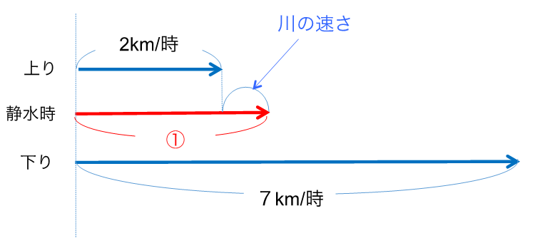 この線分図に変わった後の静水時を書いてしまうと、