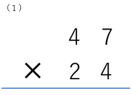 手順だけで比較すると、通常の筆算とインド式と賛否両論がでてくると思うのですが、上記のように長方形を4つの部分に分けて考える問題というのが中学入試では時々出題されます。この方法はその着想と近いものがあるので、この方法に慣れておくのはひとつのメリットです。