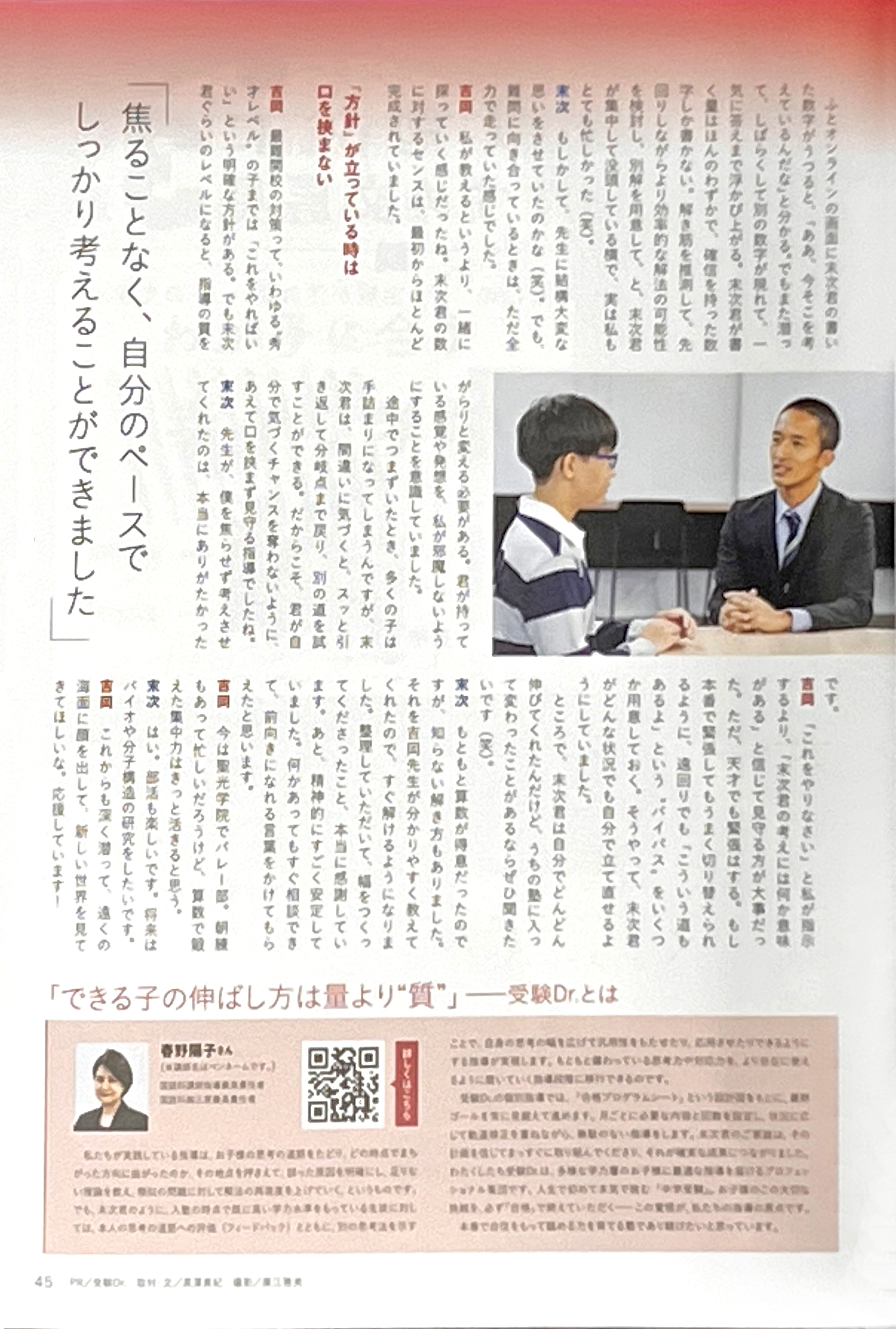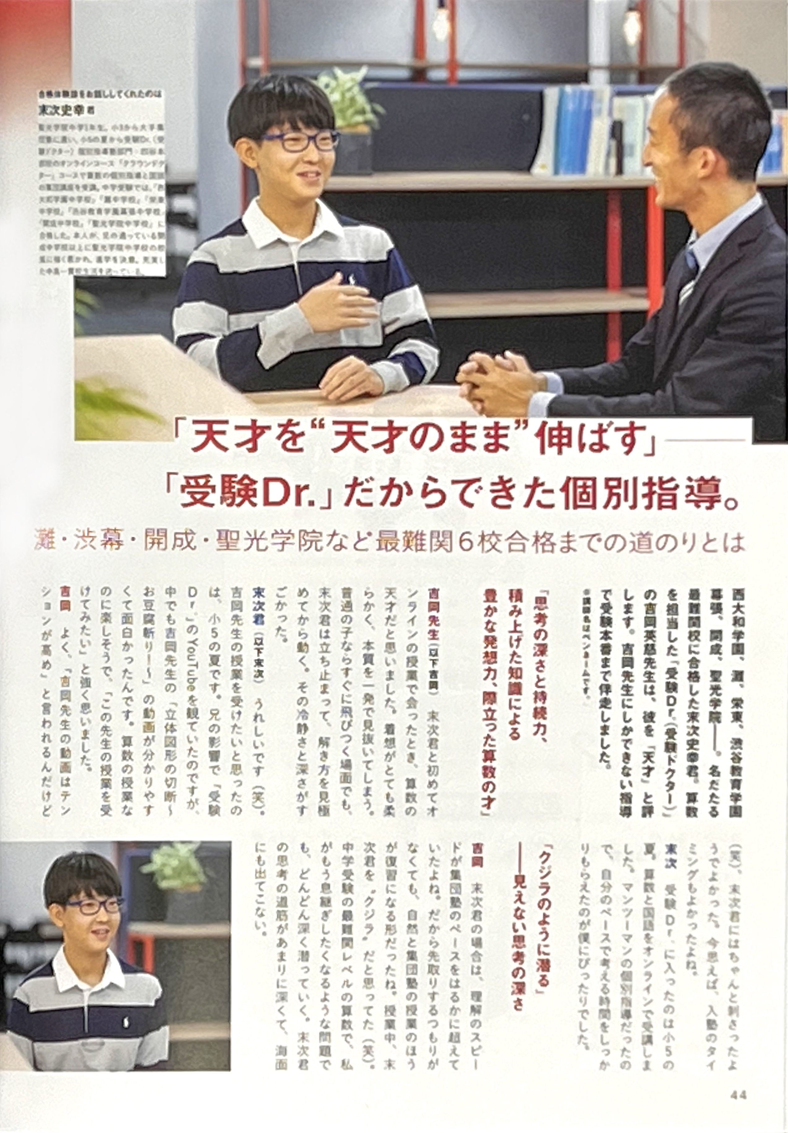 小学館 HugKum MOOK 「中学受験 親のフォローの正解ってなに?」で、吉岡英慈先生と卒塾生の対談記事が掲載されました。